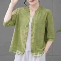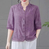 日系夏季新款時尚V領中袖開衫襯衫_簡約V領設計,修長頸部線條,開衫設計,可單穿也可以外搭!