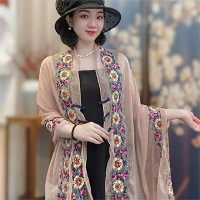新款刺繡琉璃紗披肩,一條披肩N種用法,遮陽帽、披肩、外套自由切換!重磅刺繡,高級上檔次,一年四季都能搭!衣櫥必備