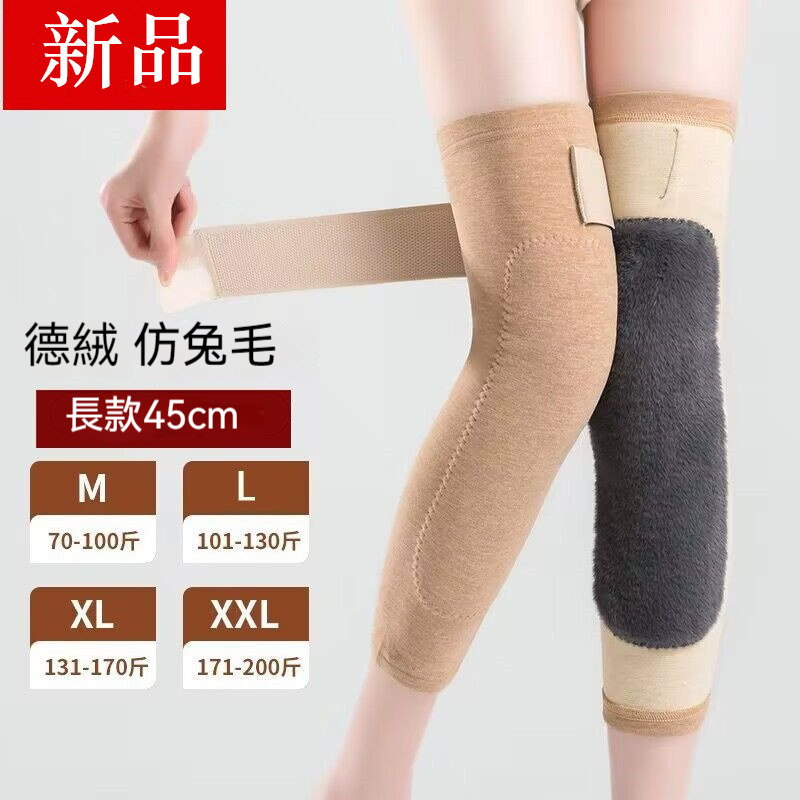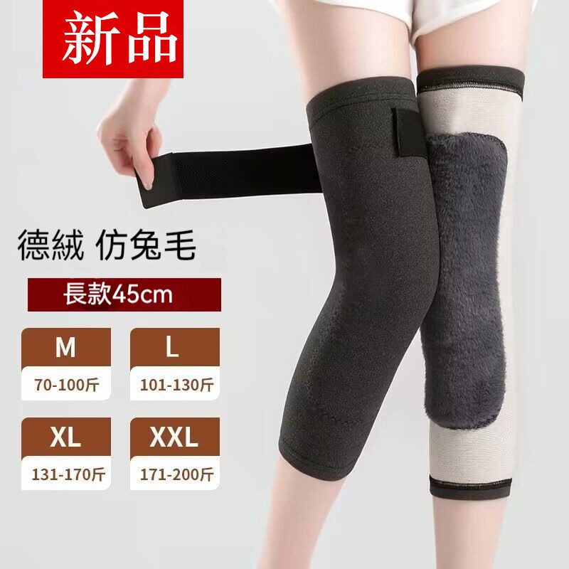 新款德絨保暖護膝 加絨加厚仿兔毛貼片 綁帶防滑長款膝蓋護套 男女同款 防寒必備