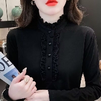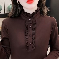 內搭荷葉領秋冬季氣質木耳邊德絨長袖打底衫,貼身保暖,冬天打底衫一件就夠