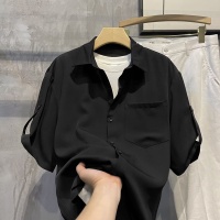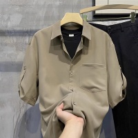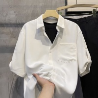 純色襯衫短袖,韓版潮流男裝,七分襯衣,輕熟痞帥,夏季寬鬆冰絲高級上衣