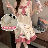 2025新款免穿Bro吊帶睡裙 兼顧可愛和性感,很難不愛 母嬰級質感 冰絲清涼 親膚溫和 內置胸墊 居家不尷尬 出行一件搞定