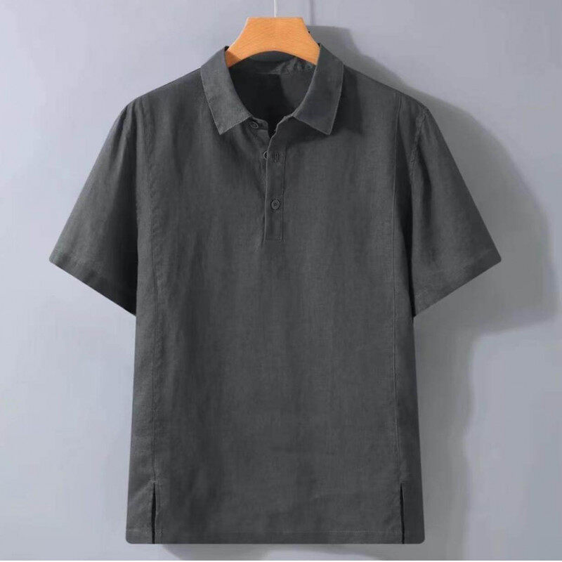 2025男士夏季纯亞麻寬鬆大碼大彈力薄款透氣簡約襯衫