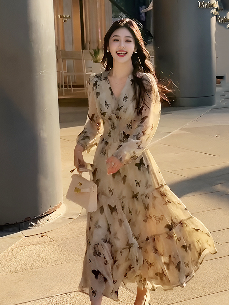 蝴蝶碎花連衣裙 輕盈透紗 蝴蝶點綴 勾勒優雅 旅途中的浪漫風景