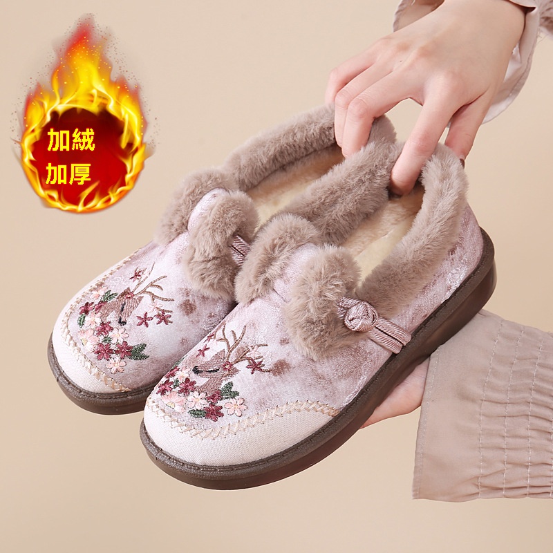 一腳蹬加絨加厚棉鞋 鞋身國風刺繡精緻典雅 傳統韻味濃郁 穿著行走間盡顯東方雅致氣質